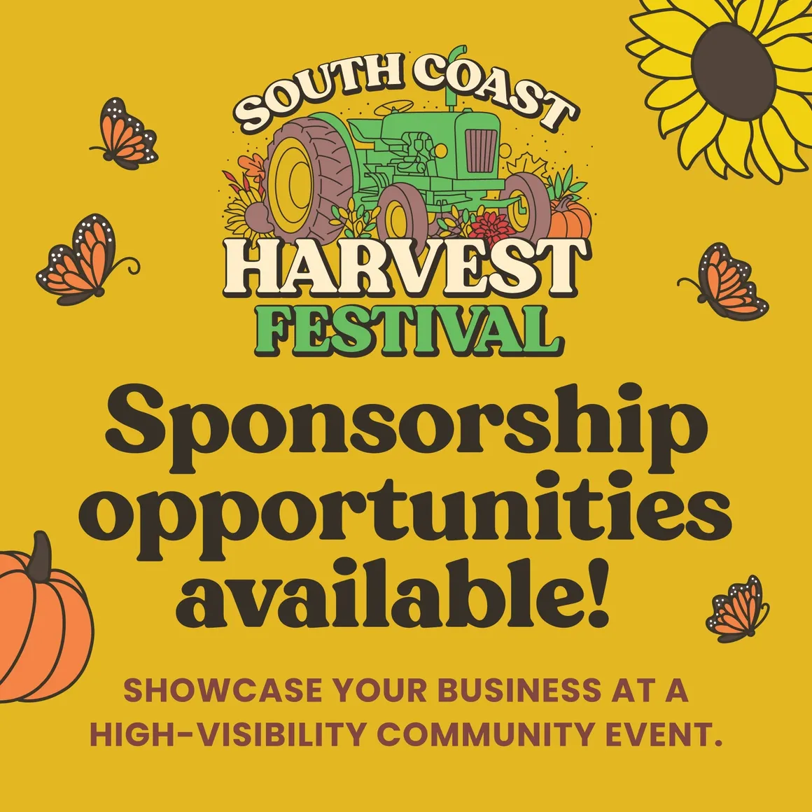 Sponsoring the South Coast Harvest Festival puts your brand directly in front of a highly engaged local audience during one of the busiest events of the year in this region.